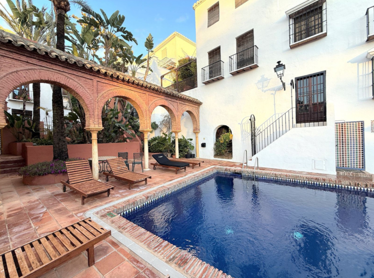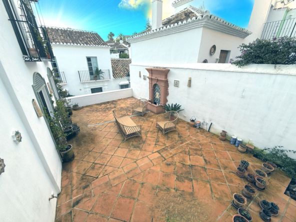 This wonderful home has been lovingly renovated by the current owners to an extremely high standard while retaining the authentic Andalusian feel with modern day amenities. The white washed pueblo is a lovely secure gated development with cobbled streets ladened with juliette balconies, and lush tropical planting throughout. This large house is Semi detached but has more of an independent villa feel to it. In a super location within the development with the communal pool being easily accessed direct from the garden. This house is perfect for a family who want a large family home in a super location without the upkeep of large gardens, and pools to maintain.