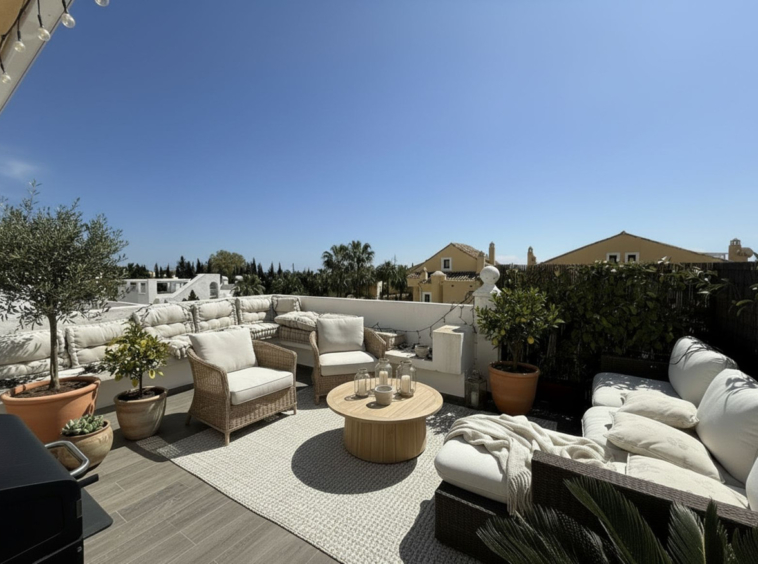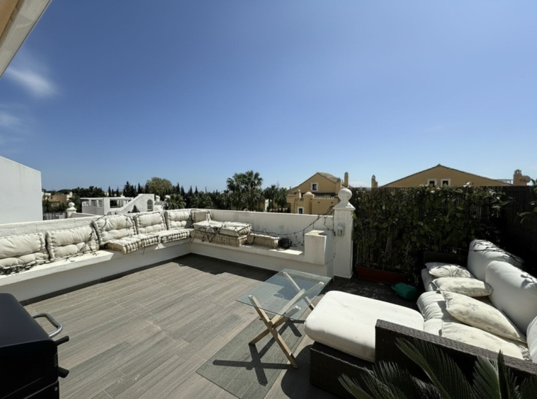 Duplex apartment with south facing terraces, solarium, parking and storage in Rocamar, Nagüeles, Marbella Priced for quick sale at just 465,000€.