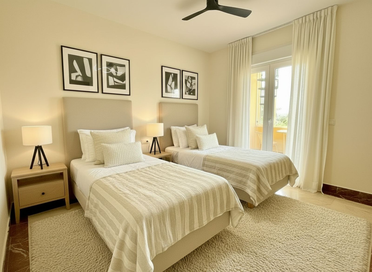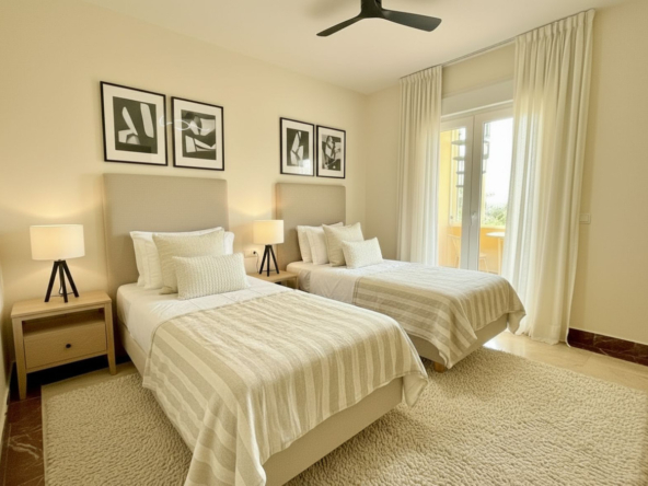 Residents enjoy a fantastic communal pool with golf course vistas, secure gated parking, and proximity to some of the best golf courses in the region, including La Quinta and Los Arqueros. Top international schools, shops, restaurants, and a 5-star hotel with spa and gym are all nearby.