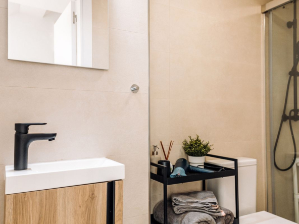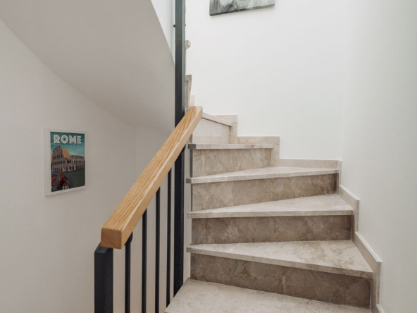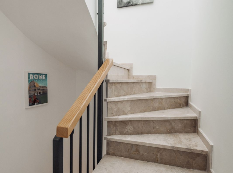 Upstairs you will find the master bedroom with en suite shower room and a little terrace, and the third bedroom again with en suite bathroom.